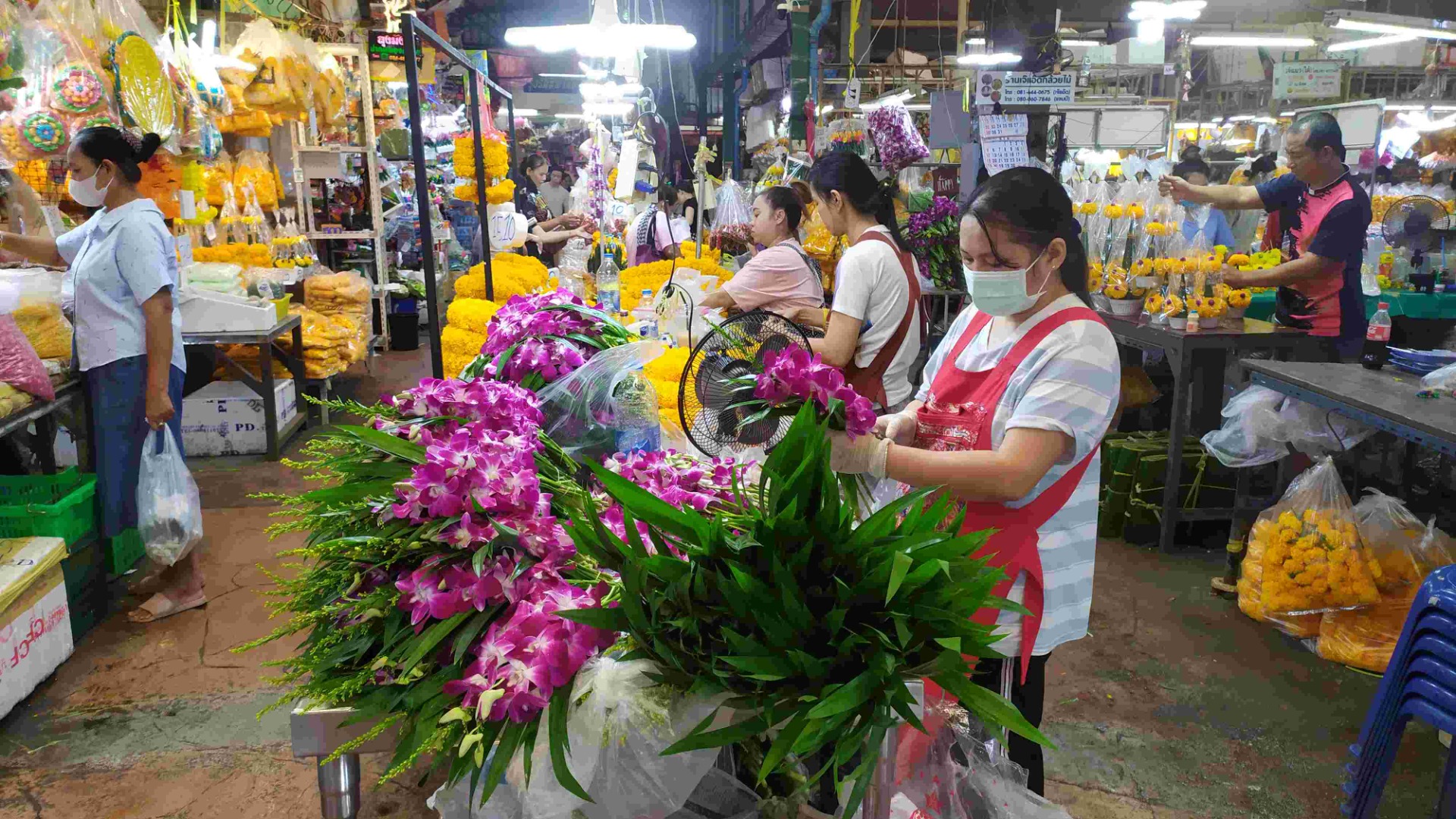 Ještě než velkoměsto stihne otevřít oči, tady už jsou všichni dávno vzhůru. Ve světle zářivek a prvních náznaků svítání se mezi hromadami zeleně odehrává tichý, neúnavný rytmus práce. Svazky bambusu, lesklé listy banánovníku, lotosová poupata a voňavý jasmín se střídají v rukou rychleji, než turista stíhá vnímat, a jejich nasládlá, až omamná vůně,...