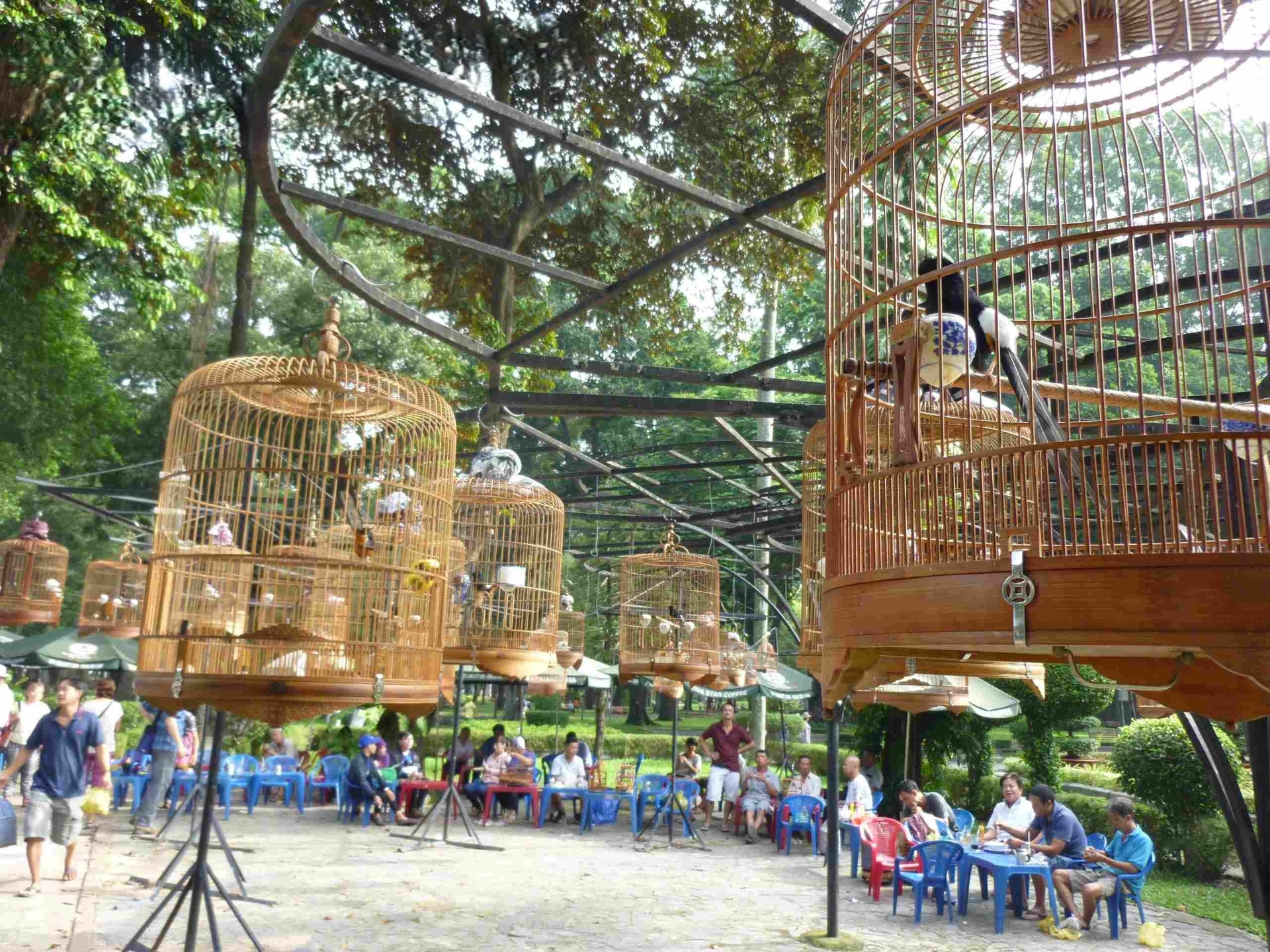 Ve vietnamské tradici se říká, že krásná klec dělá radost nejen ptáčkovi, ale i duši jeho majitele. Proto se jejich výběru a údržbě věnuje tolik pozornosti. Na trzích v Hanoji je možné najít celé stánky specializované jen na příslušenství pro zpěvné ptáky, od malých misek na vodu až po miniaturní houpačky a zástěny proti slunci.