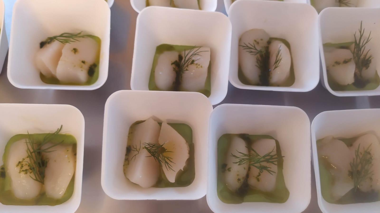 Předkrm s jemně marinovanými mušlemi svatého Jakuba, servírovaný s bylinkovou emulzí a elegantní ozdobou, je oslavou harmonie. Symbolizuje respekt k surovině, estetika prezentace je mostem mezi tradicí a inoavací. Obdivuji kultivovanou jednoduchost a excelentní jemnou chuť tohoto předkrmu!