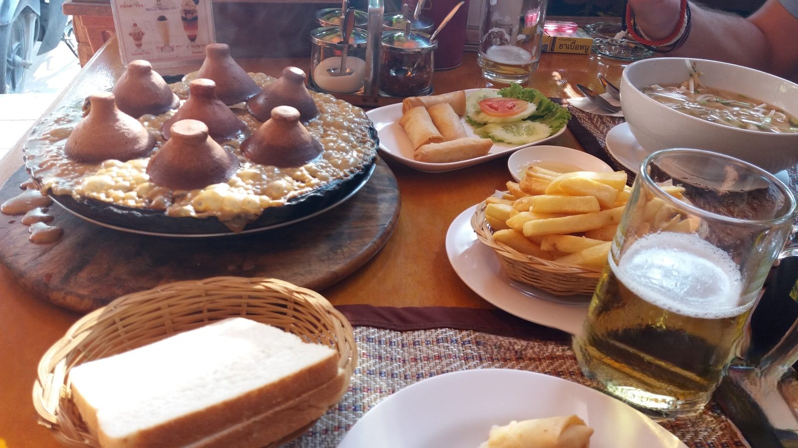 Dneska už přesně vím, kam jít. Neztrácet čas, nehledat, jen se vracet. V Jomtien mám svá dvě jistá místa... Opal House a Surf House. Nenápadné podniky, kde se nic nepředvádí, ale kde geniálně umí to podstatné... rozpálit pánev, přidat máslo, česnek a čerstvé slávky a nechat všechno spojit v chuť, kvůli které má smysl se vracet. Litinová pánev ještě dlouho po přinesení syčí, máslo se mísí se šťávou ze slávek a vytváří hustou, voňavou emulzi, do které si instinktivně chcete namáčet pečivo. Malé hliněné kalíšky udržují teplo i aroma, a každé jejich odkrytí je bezva překvapením... a jsou tak krásně autentické.