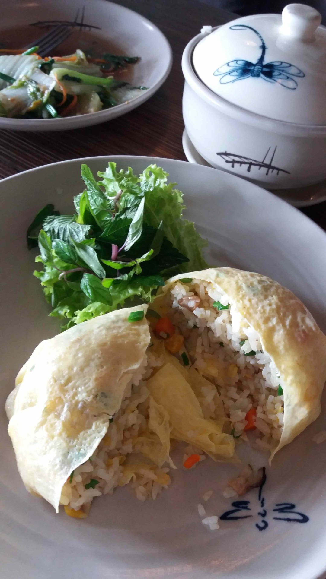 - V centrálním Vietnamu, v Da Nangu nebo Hue, se cơm chiên bọc trứng podává lehce pikantní, s důrazem na aromatické místní bylinky.