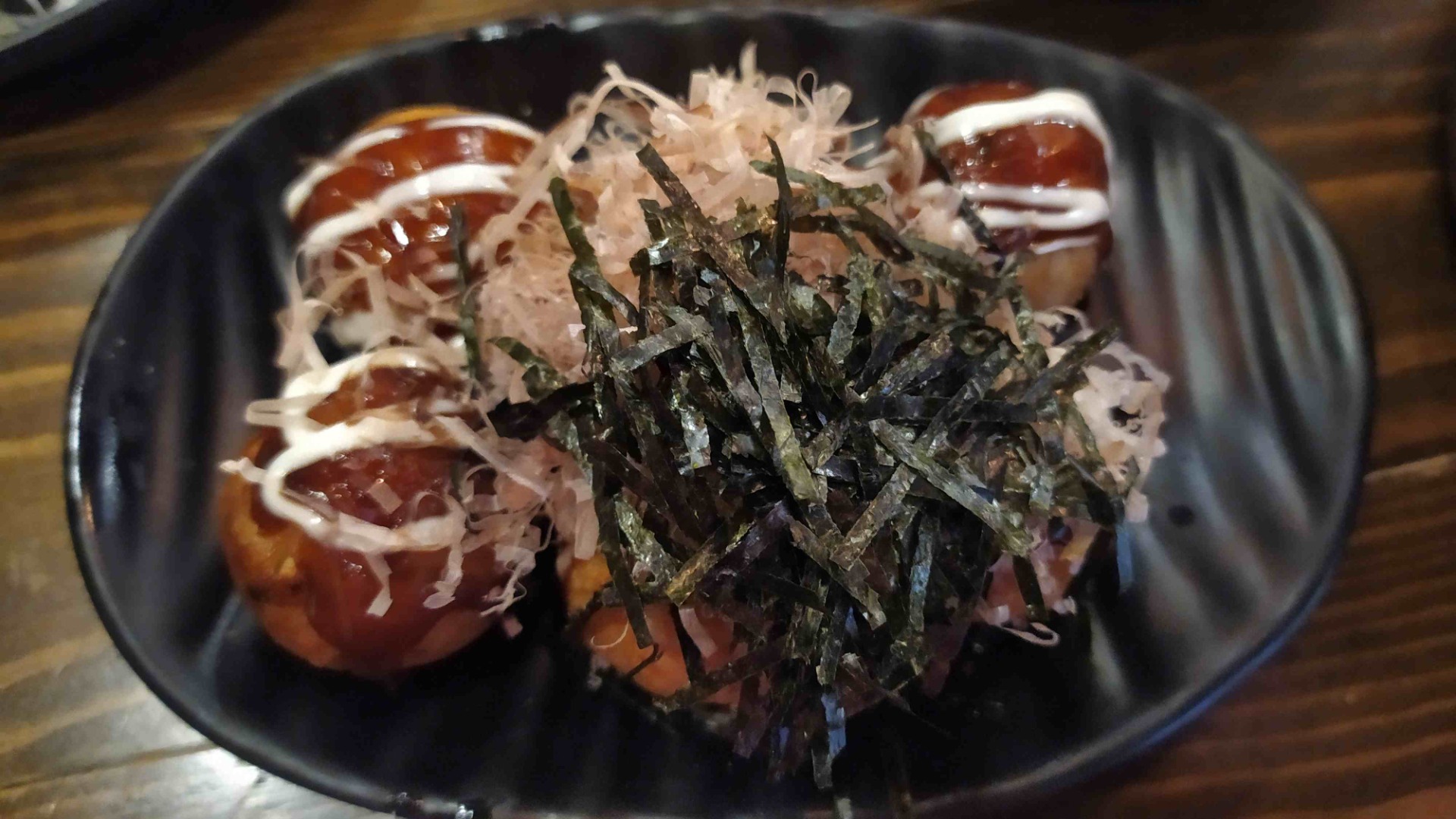 Kouzelná kombinace smaženého těsta, mořských plodů a další ingrediancí, japonská verze street food, prostě rychlé a chutné jídlo do ruky. Základem takoyaki jsou malé koule těsta, které se naplní kousky chobotnice tako, zelenou cibulkou, zázvorem, a obvykle také kousky tempury nebo kousky krevety. Po usmažení se koule ozdobí omáčkou takoyaki (pro lepší představu omáčka má chuť podobnou omáčkám teriyaki), majonézou, a někdy se přidávají ještě vločky sušeného tuňáka katsuobushi, které se na horkém pokrmu kroutí jako by tančily, jídlo se nakonec dozdobí proužky mořské řasy aonori.