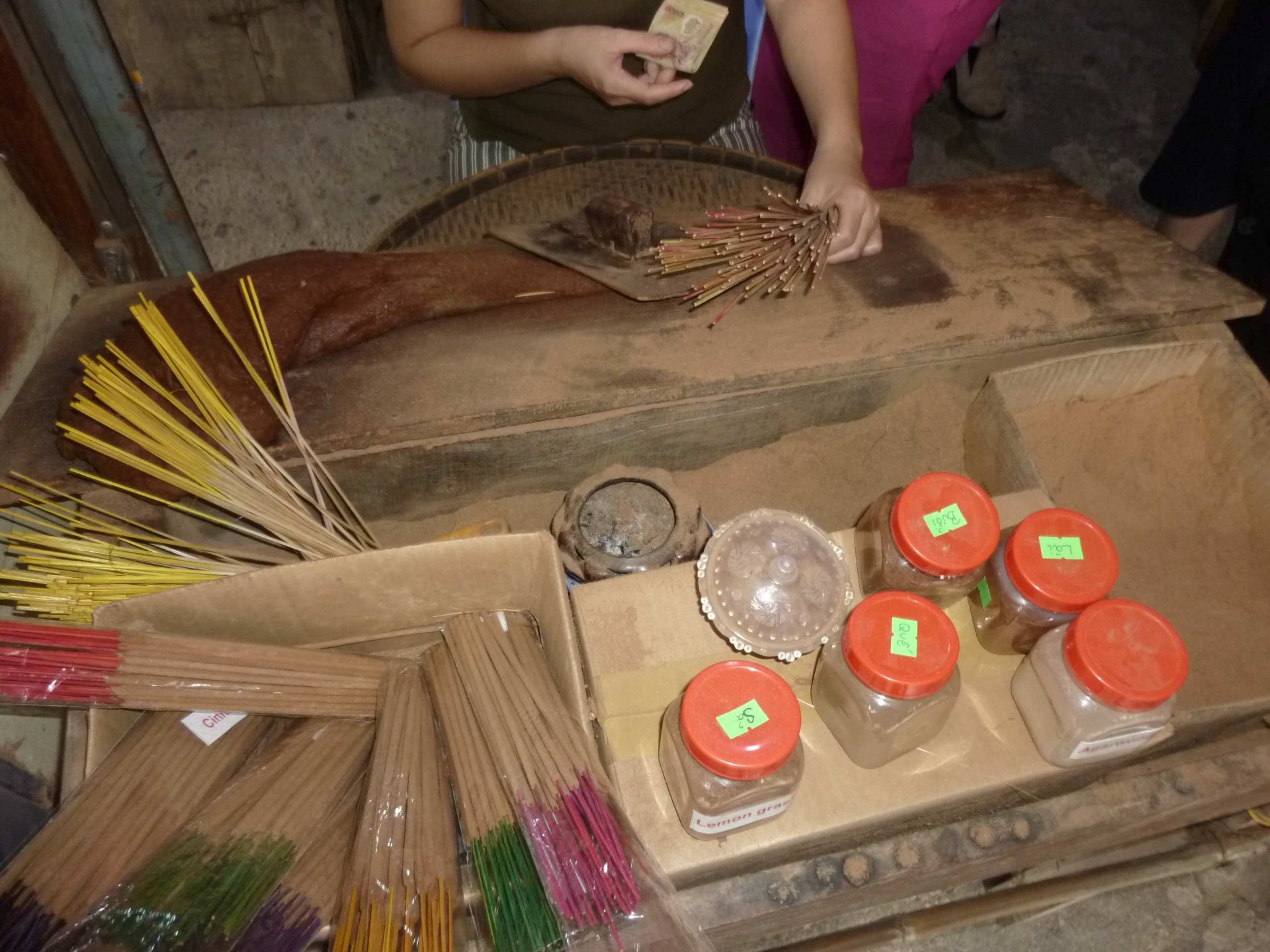 Starší členové rodiny mívají většinou na starost sušení, sběr nebo balení hotových výrobků. Nejobtížnější a nejkomplikovanější fází je správné smíchání vonného prášku z dřevěných pilin, kam je přidáván třeba badyán nebo skořice. Takovou práci musí provádět kvalifikovaní a zkušení jedinci, pokud se směs nepřipraví správně, vůně pracně vyrobeného produktu totiž nemusí být nakonec cítit.